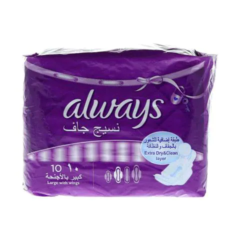 Durgham HomeProductsAlwaysAlways Cool & Dry No Heat Feel Maxi Thick Large Sanitary Pads with Wings 10 pad count