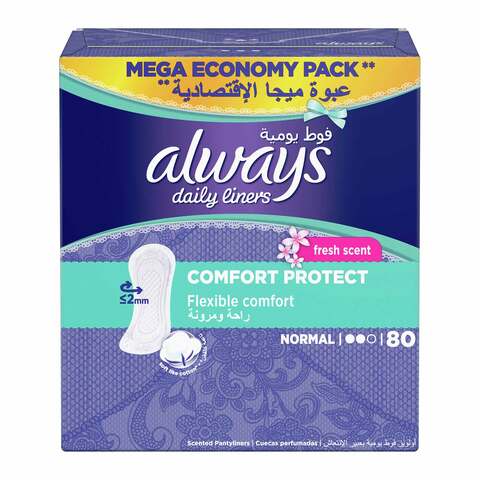 Durgham HomeProductsAlwaysAlways Daily Liners Fresh Scent Comfort Protect Normal Pantyliners 80 count