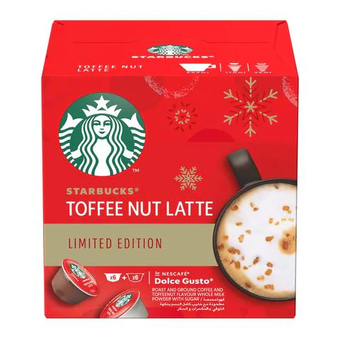 Durgham HomeProductsStarbucksStarbucks toffee nut latte holiday blend limited edition by Nescafe dolce gusto 127.8 g
